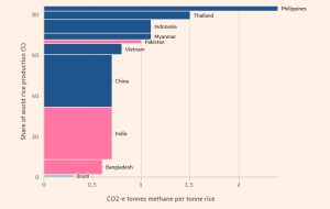 Methane is responsible for about a third of the rise in global temperatures, according to the International Energy Agency, and rice accounts for 10-12 per cent of global methane emissions.
